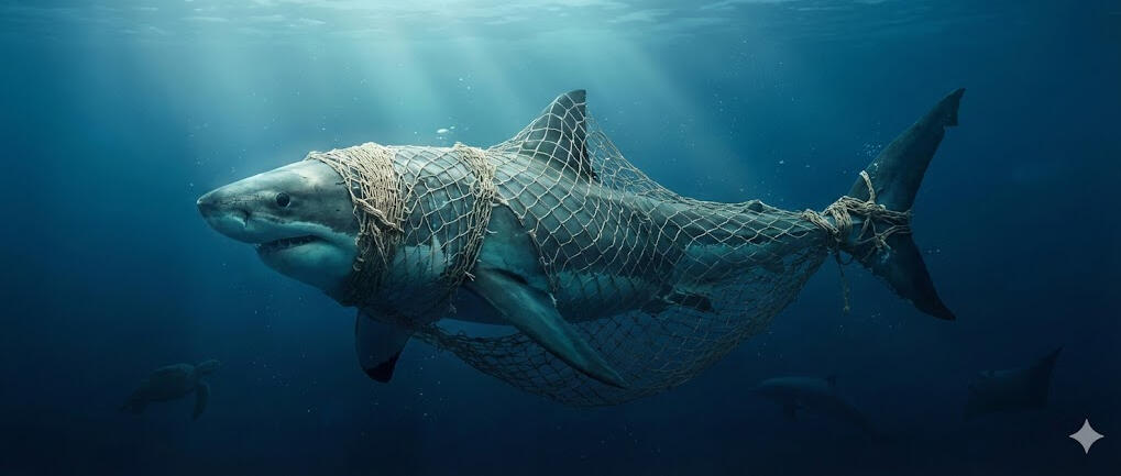 They are fishing nets that catch sharks — and also dolphins, turtles, rays and other marine animals.